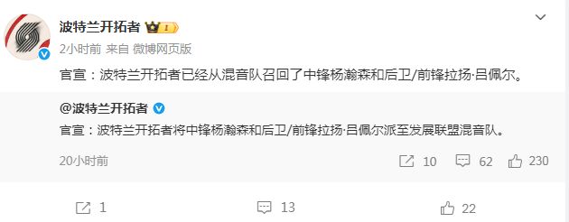 北京时间12月16日,杨瀚森在对阵勇士的比赛被弃用后,他本赛季第4次下放发展联盟,轰下18+10+4的首次两双数据,率领撕裂之城混音主场116-110战胜斯托克顿国王。如今开拓者官方已经宣布将杨瀚森召回,但队记Casey表示在完成球队训练后,杨瀚森很可能会再次被下放。